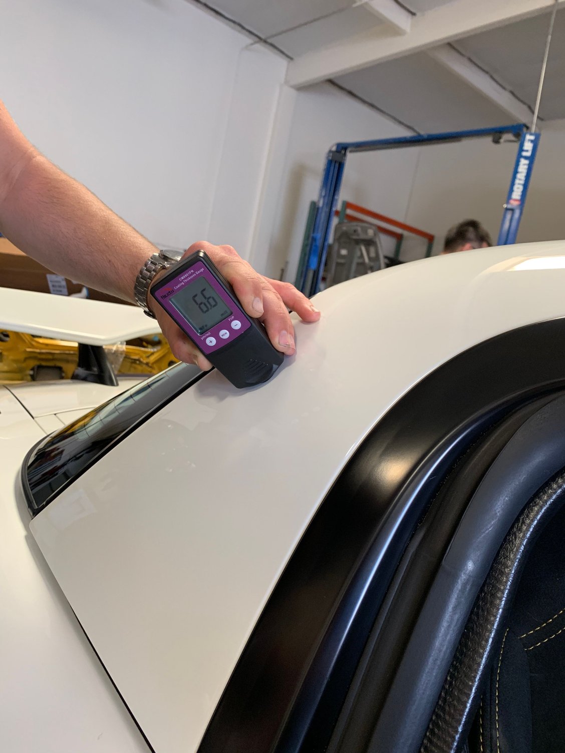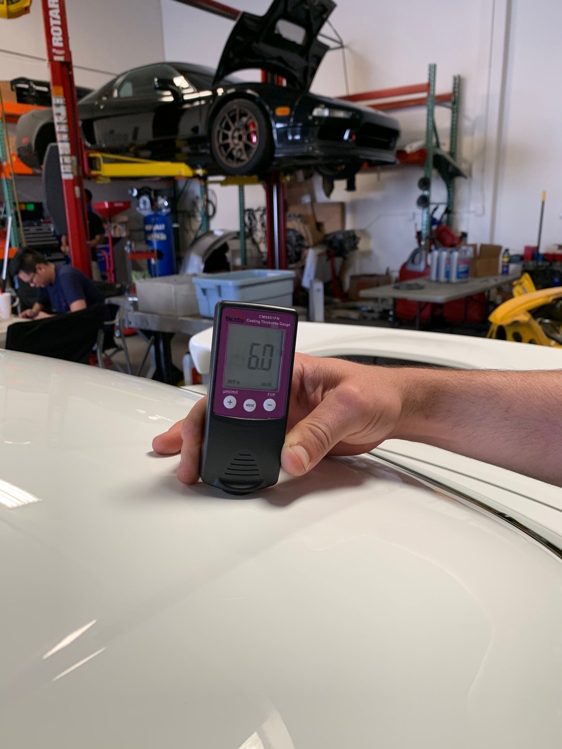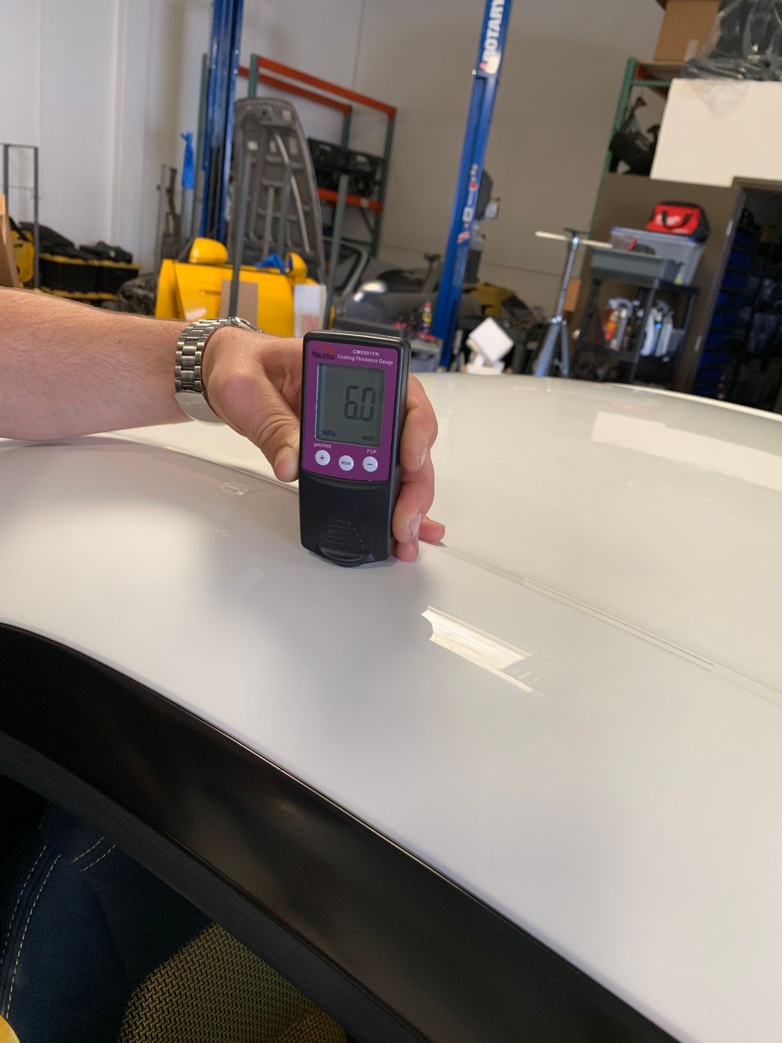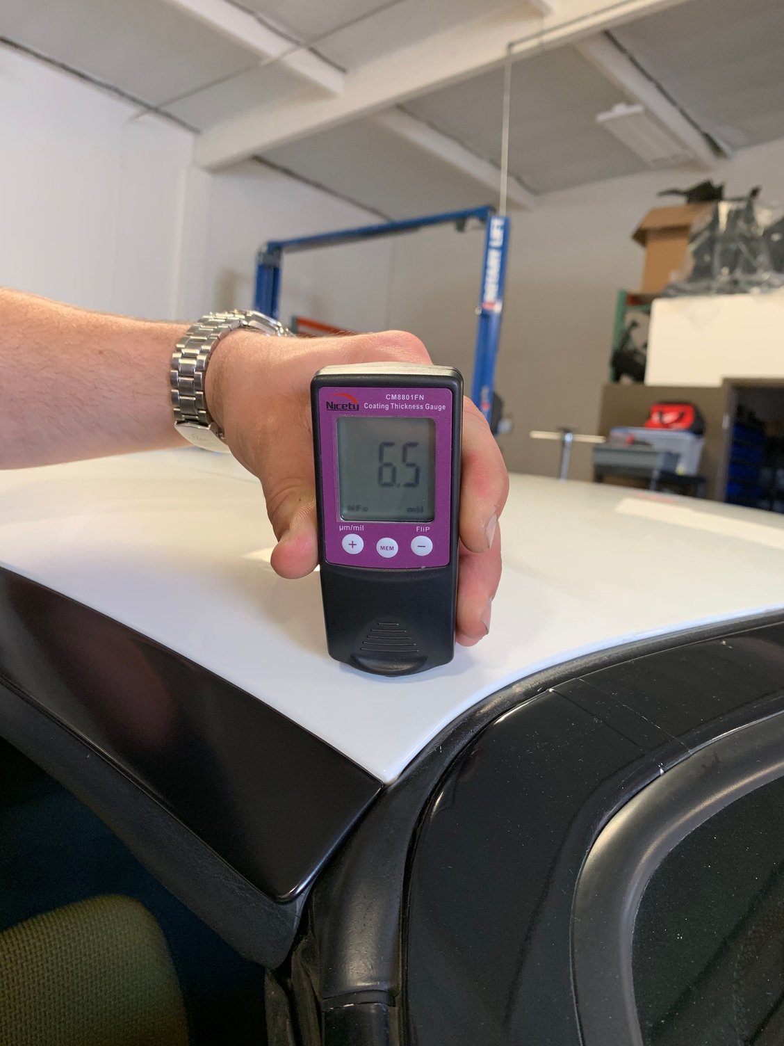 The HT has the original factory GPW paint. I have included several pictures of paint depth readings to show paint consistency all throughout the surface.