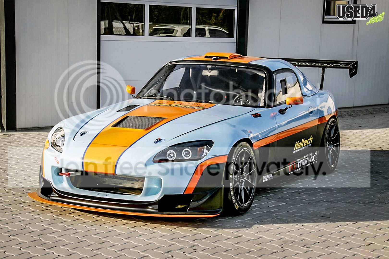 Check out this awesome S2000, I think it's German - NSX engine, vintage Ford GT colors, 450 hp, 295 lb ft: