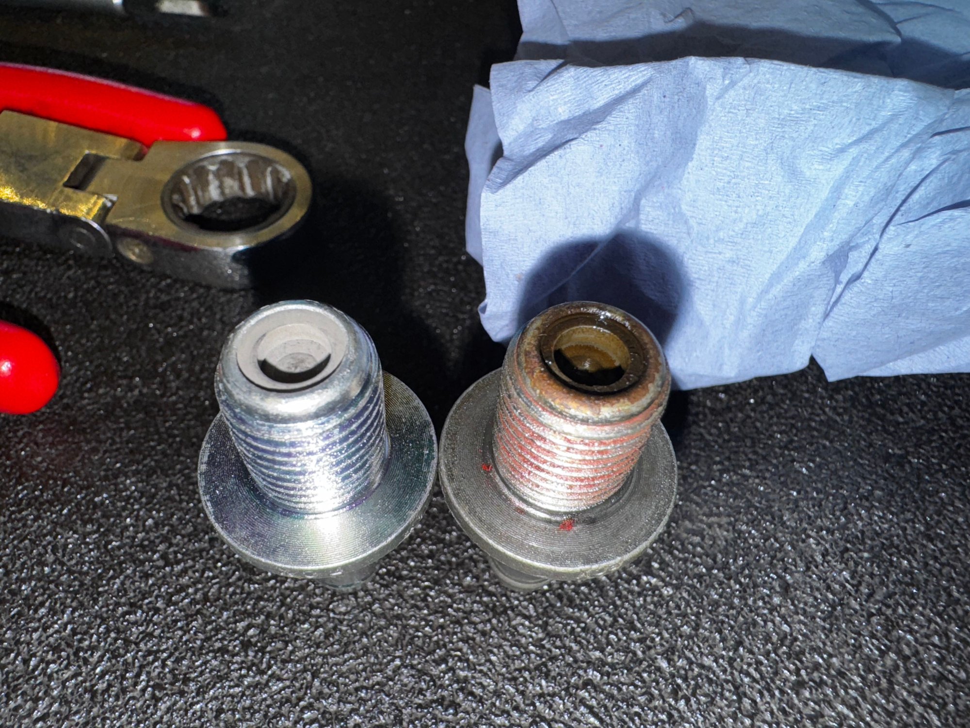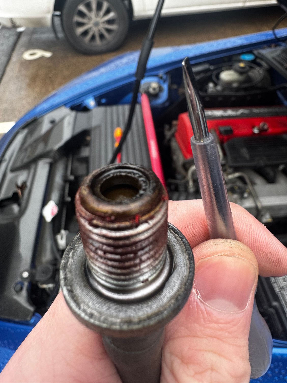 Blimey... Looks like anti seize on the thread, or copper slip. Neither is needed. Get it rattling like a snake, loads of cleaner blasted in.