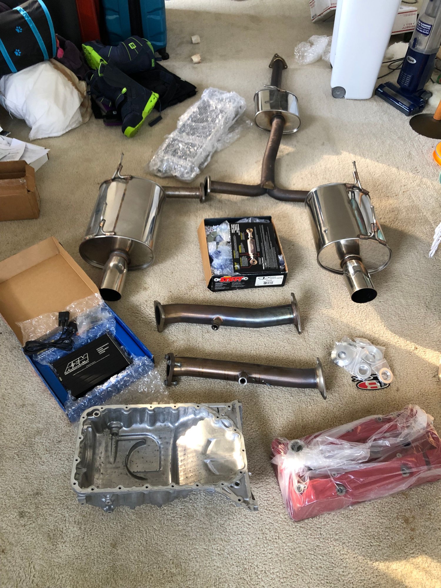 Used excellent condition Fujitsubo Legalis R Exhaust - $900 Used excellent condition Ingalls Engine torque Damper - $sold Brand new AP2 Valve Cover - $220 Used Advan RS 17x8 +45 17x9 +45 Original silver, painted black. Comes with near new continental dw tires. Made for the s2000, but required fenders to be modified to fit -$1700 Used excellent condition Rockstar Garage Test pipe -$90 Used excellent condition Berk Test pipe -$sold BNIB AEM EMS V1 1052 - $600 Used good condition Alloy Craft rear diffuser for AP1 -$sold Used good condition Oil pan - $150 Brand new Blox Differential Collars -$80 Used good condition Universal Heat Exchanger $100 Used excellent condition OEM polished Titanium shift knob -$sold Used good condition 00-01 AP1 Sway Bar -$90