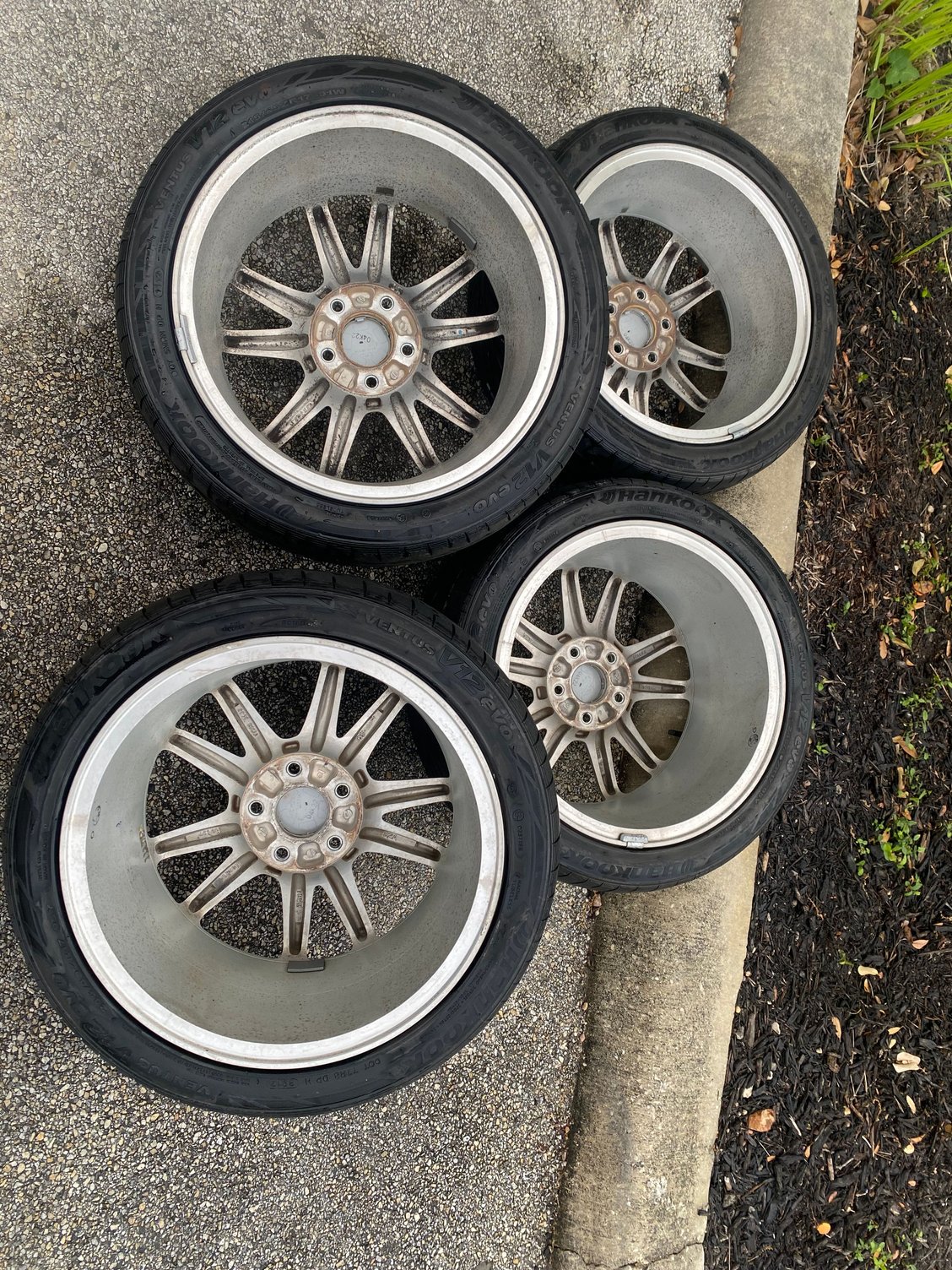AP2 V1 wheels for sale. Going a different route as I was going to build another S2, but decided to off load these parts. Wheels are not mint as they have see road life, no curbs or rashes and no bends. No re finish, original as on oem from dealer. One wheel have a scratch and the other show like clear imperfection or deterioration. Please examine pics. Pm to for deal if shipping in States. International buyers arrange shipping.
