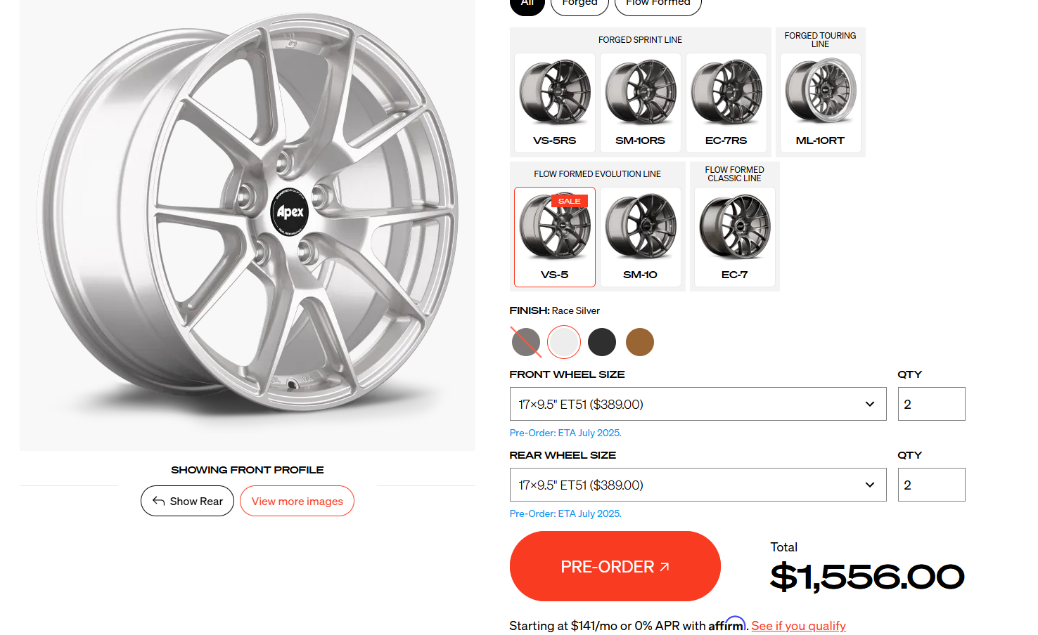 @michaelnyden - Apex released another flow formed wheel. 17x9.5 +51. But, 19.6 lbs. Hits your price target. $1500 for a set. It's essentially a me-too option of the SA72R but with a slightly less aggressive offset. Same weight. 17x9.5 +51 vs +47.