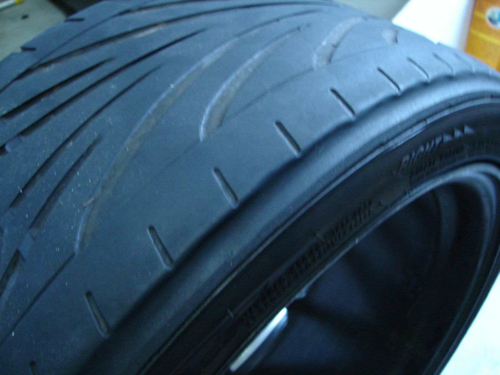 edit: I am very cautious of my tire pressure and check on a weekly basis with a longacre gauge its always 28-30rears and 30-32 front. Im stumped because i see nothing for it to rub on. the tilted pic of it gives it more justice, its a huge groove in the tire that is deep enough to cover half your index finger. Im going to drive to a wheel shop tomorrow to let them check it out and see what they think.