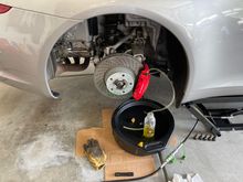 Benjamin warning up the car for the oil change