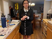 She was caught on the table!