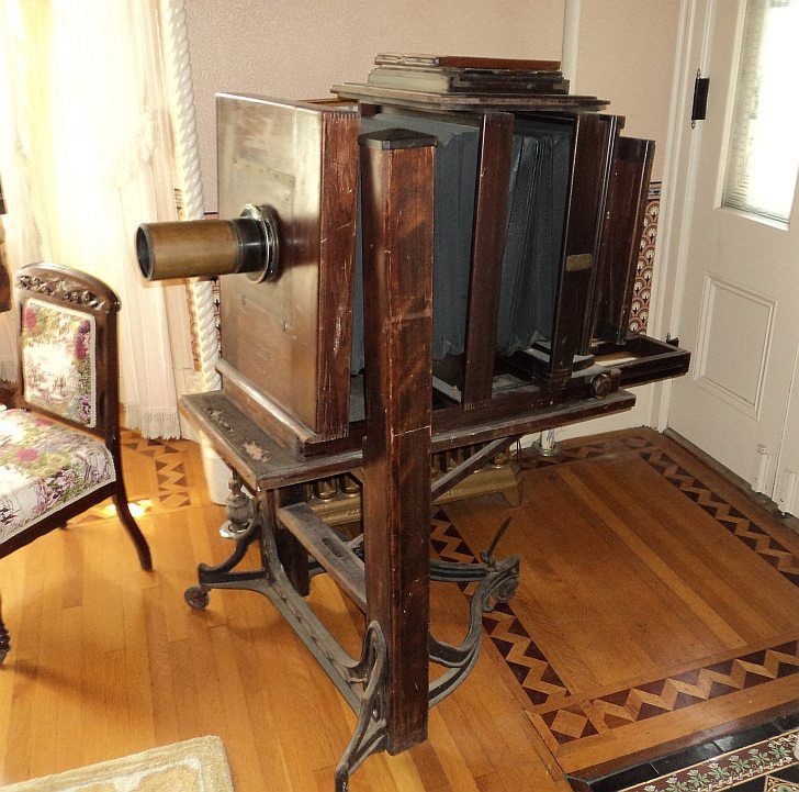 At the B&B. Working early tintype camera.