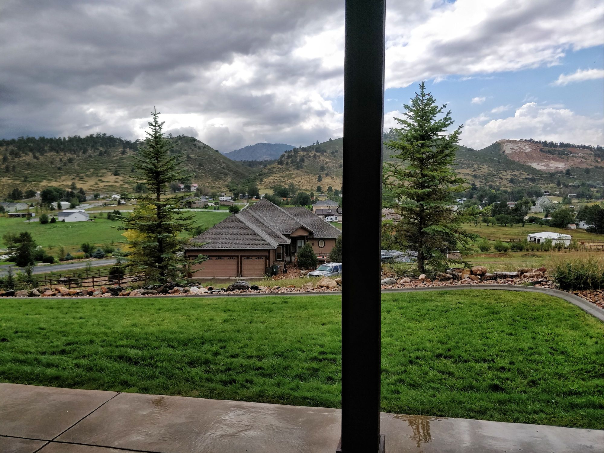 Looking out the basement great room to one grass area of the two, due west. BTW, I went to that house below and made new friends. The couple has two teenage boys and they will be great neighbors.