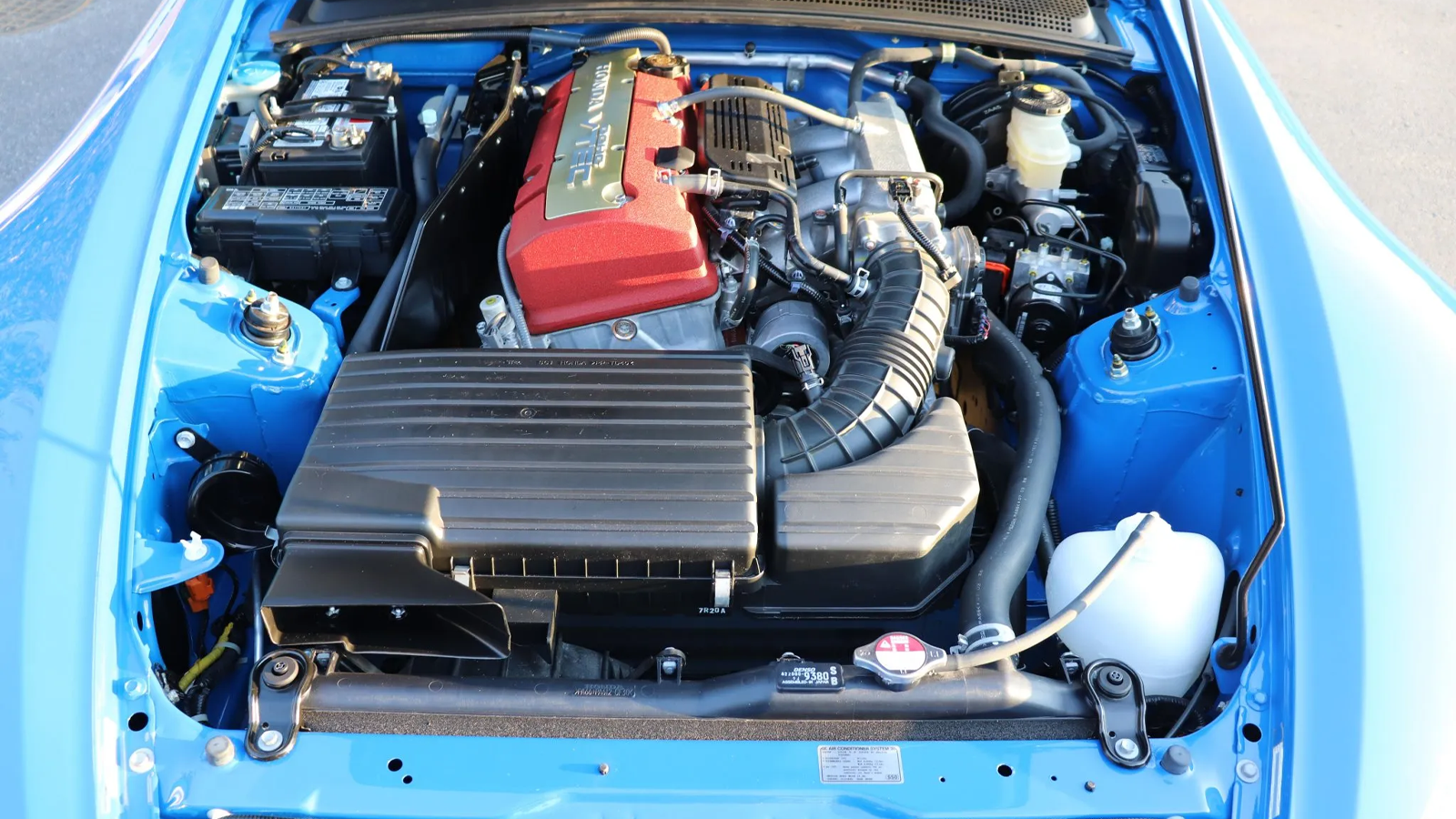 Finished in the iconic Apex Blue Pearl, the Honda S2000 CR boasts a series of features unique to the Club Racer version. Among its most distinct characteristics are the bespoke bodywork and aerodynamics, including a redesigned front fascia, a removable black hardtop, and a prominent fixed rear wing. Additionally, the car sits on 17-inch alloy wheels wrapped in Bridgestone Potenza RE070 tires, a fitting choice for a car built to excel in performance and handling.