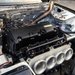 So in went the 2.4-liter K24 motor. Custom engine mounts help situate the block as far forward as possible. This meant the top of the valve cover wouldn't clear the nice sloping hood of the Prelude. So a cutout was made into the hood to let the top of the power plant peek out. That's not the only thing extending out of the hood though. The exhaust pipe also runs right out from the back of the motor and out of the hood on the passenger side.
